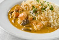 海老とマッシュルームをクリームでなめらかに仕上げました。フレンチならではの匠の味。バターライスと共にお召し上がりください。お皿に盛ればフレンチレストランの味がお楽しみいただけます。